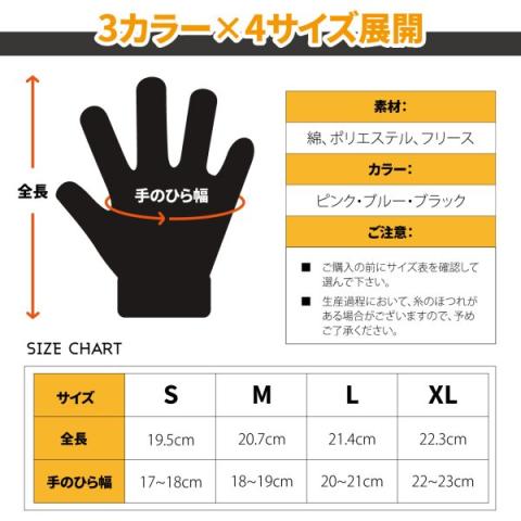 親指、人差し指に帯電合皮?が貼ってあり、タッチパネル操作が可能になっています。