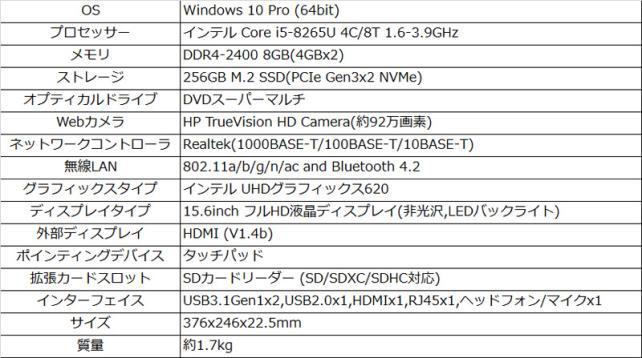 以上のように、特段構成のではないのですが、一般的なオフィスワーカーの要望に十分に応えられるバランスの良いノートPCです。
