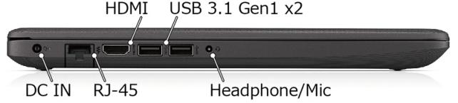 インターフェイスも充分で左側面には、手前からヘッドフォン/マイク入出力端子,USB 3.1 Gen1端子が2基,HDMI端子,ネットワーク RJ-45が1基,ACアダプタ用電源端子があり、