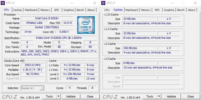 CPUは、Core i5 8265U 4C/8Tで、1.6GHz-3.9GHzで動作します。