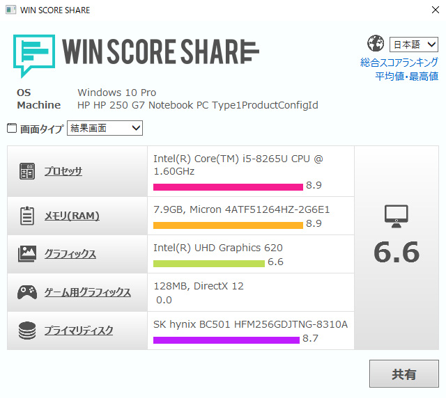 WIN SCORE SHARE/Crystal Mark 2004R3のスコアは、