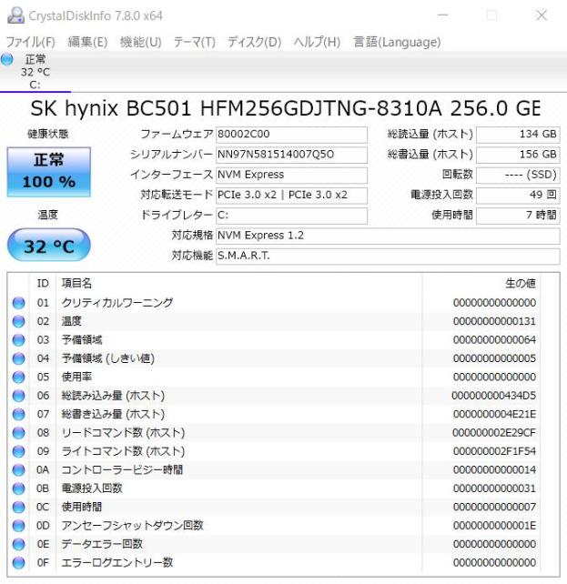 内蔵SSDのCrystal DiskInfo./Crystal DiskMark