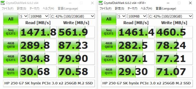 SSDは、PICe 3.0 x2のM2.SSDなので、超高速とはいきませんが、SATASSDより早く、充分満足できるスピードですし、会社で使うには、発熱の少ないX2辺りが丁度良いのではないかと思います。
