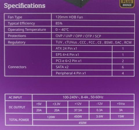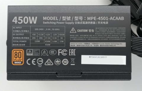 まぁ、たいしたワット数必要ともしないマシンなので80Goldあたりを買う必要もないですし、ましてや1000W級の電源もいらないしってことで大体の事を賄える450Wです。