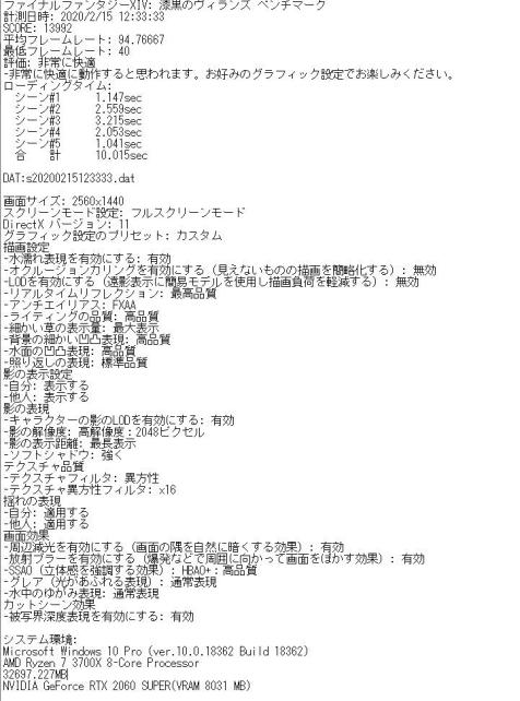次にFF14のベンチマークです。