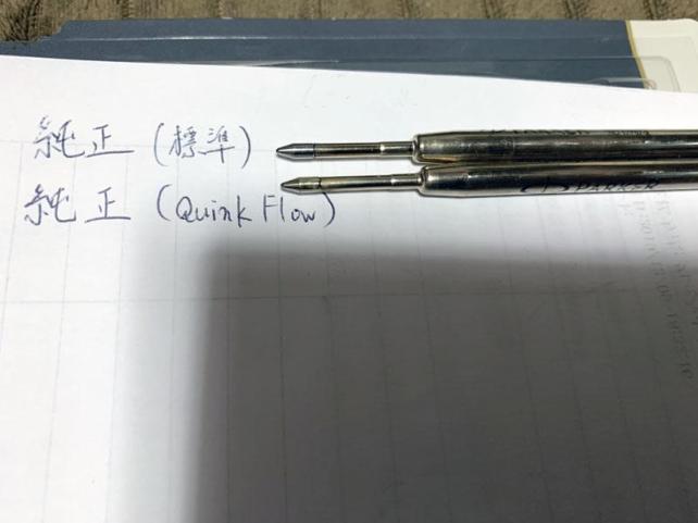 実際に紙に文字を書いてみると、標準装着の芯よりはQUINK flowは少し書き味が軽くなったような気がします。その割に発色は標準装着の芯よりは濃く出ていて、今までよりも早く文字を書き上げることができそうな感触を受けます。標準装着の芯は、インク残量が減ったせいなのか、文字を書いていて案外かすれてしまう部分が多くできてしまっていたのです。