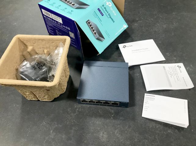 基幹ケーブルと基幹ケーブルの接続用に、TP-LINK のスイッチングハブ「TL-SG105」を購入。