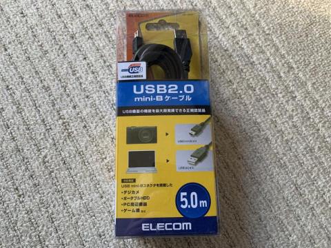 そこで原因の切り分けをするために、DCアダプターを使わずに起動する方法を考えました。標準添付のDCアダプターは5.8V 1A出力ですが、本体の電源入力端子はUSB mini-B(SONY型)ですので、USBの標準電圧である5Vで、1.2A以上供給できれば恐らく不足はないだろうと考え、シガライターソケット向けのUSBチャージャーと、長めのUSB mini-Bケーブルを用意することにしたわけです。