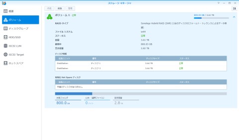 完了すれば、おそらく3.64TBになると思います。・・・ダメなら管理で増やすかな。