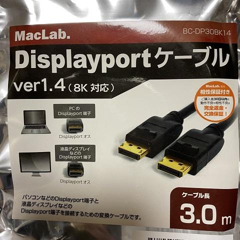 モニター付属の物は1.5mほどしかないし、DP1.4かも怪しい評判だったので最初から買うつもりでした。DP1.4で3mとなると数少ないし見つけても結構良いお値段しますがMacLabは2000円切って庶民的。即ダイブしました。