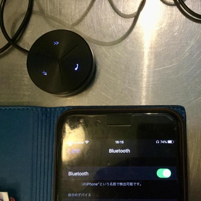 サンバイザーに取り付ける充電式のBluetoothレシーバーを勧めたんです