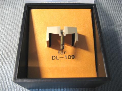 DL-109カートリッジはMM型カートリッジですが、DL-103の性能をMM型で達成しようとしました。MC型に劣らない周波数特性を追求したカートリッジで円形のサマリウムコバルトマグネットを使い、テンションワイヤーでカンチレバーをねじで固定しています 内部にはゴム製の薄いダンパーもありますがカンチレバーとマグネット、テンションワイヤーをピアノ線で保持しています。 これ以前にDL-107という先代機種がありますが交換針構造はDL-109が簡素化されているようです。