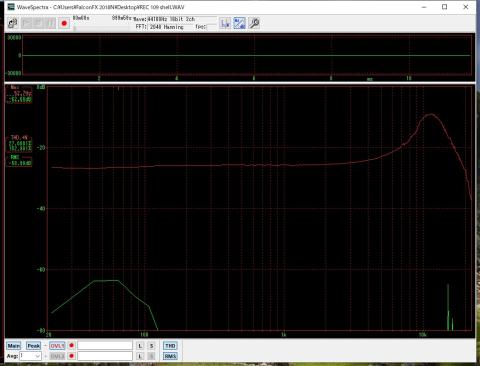 低音は素直に出ていますが、高音の「シッ」などの音が耳障りに聴こえます 10KHzを中心に15dBは上昇...してるのでやむをえません 何処かで高域の共振なんだろうか ゴムダンパーで押さえないと