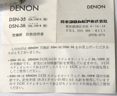 DL-109D用交換針 DSN-35 楕円針ジャンク品です 早く言えば針折れ品です。