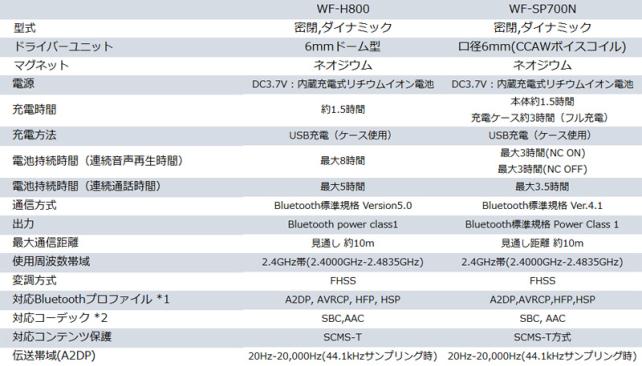 これまで使っていた、ノイズキャンセリング付き完全ワイヤレスヘッドフォンWF-SP700Nとスペックを比較すると、