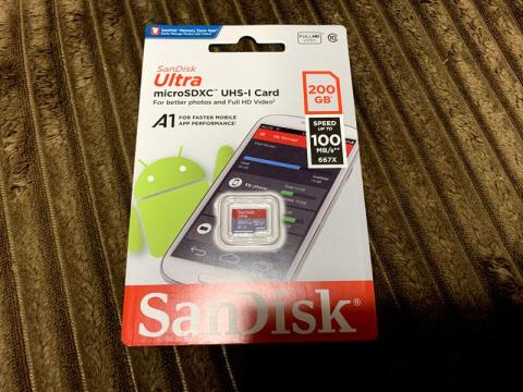 以前取り上げた同じUltra 200GBは、パッケージにSD - microSD変換アダプターが同梱されているものでしたが、今回はメモリーカード単品のパッケージです。
