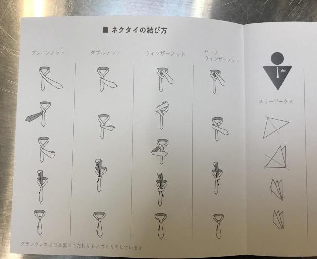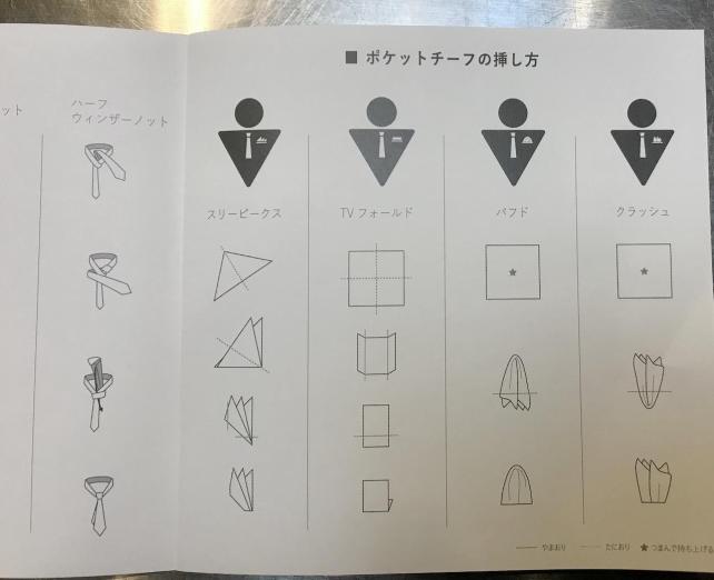 製品にはネクタイの締め方とともに ポケットチーフの折り方ガイドが付いてました