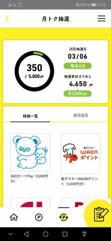 頑張ってポイントを貯めると、週や月の単位で抽選に参加する事が出来ます。