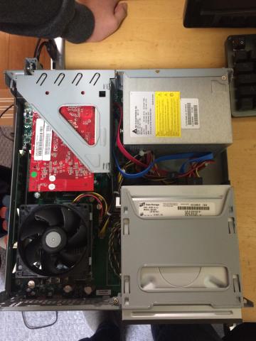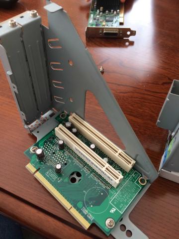 グラボが差せればと思いましたが、なんとレイザーカード使用でPCIしか搭載していないモデル。PCIexとPCIのモデルもあるようですが、このモデルで使用できるレイザーカードは単体での入手困難で、搭載モデルを探すしかないようです。