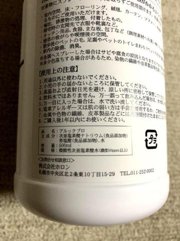 しかし、このアルックプロの主成分は次亜塩素酸ナトリウムであり、これは殺菌に使われる成分です。正しく表記するのであれば「消毒」や「滅菌」の方が近いのではないかと思います。