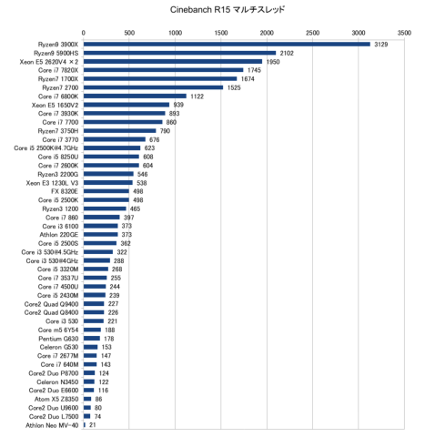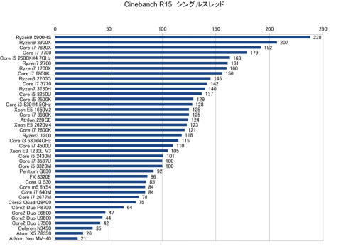 Cinebench R15のベンチマーク結果としては