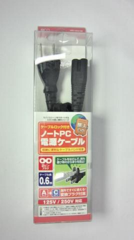 ノートPC用 電源ケーブル メガネ型 0.6mに