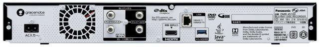 背面は、地上デジタル/BS/CSアンテナ入出力端子とHDMI出力端子,イーサネットコネクタ,USB 3.0端子が付いています。