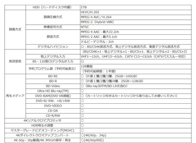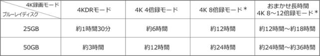 このモデルは、4K放送をDR以外に、長時間モードとして圧縮する機能が搭載されています。