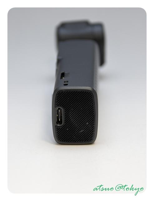 これでは机に置いて充電しながら撮影が出来ないので、側面に端子があった方が便利だったかも。