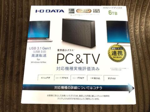 以前TV接続用にほぼ同等のシリーズの3TBモデルを導入している、I-O DATA HDCZ-UTL6Kです。