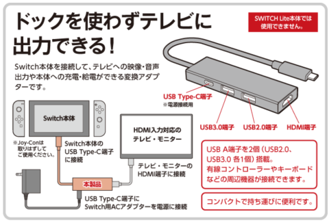 Switch本体に付属しているドックを持ち出すには