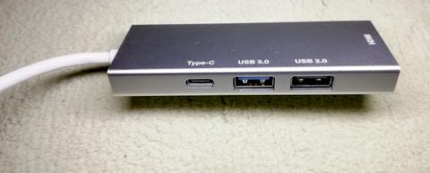 長辺側面にType-C(メス)とType-AのUSB3.0(メス)とUSB2.0(メス)が。