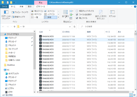 ちなみに撮影データはこのように1分単位で区切られて前後別々のファイルに保存されます。ちなみにファイル名末尾のAがフロント、Bがバックカメラとなります。