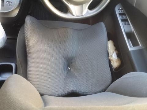 自動車に付けてみたんだけど、流石にこれは無理があった。分厚いのでシートをどんだけ低くしても天井に頭が付きそうになる。さらにシートの前方までカバーできないので太ももが痛くなるんだ。なのでオフィスチェアに限定されるね。
