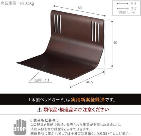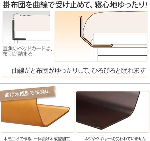 「ベッドから落ちることの防止」という目的の為、単なるL字の板です。