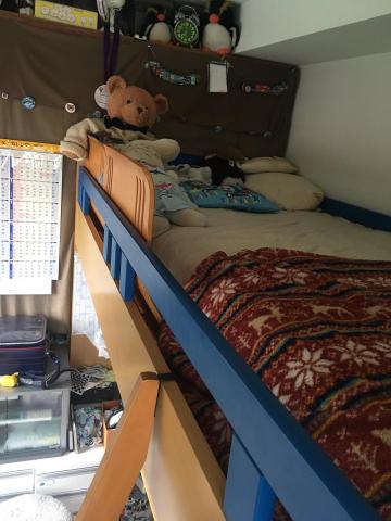 ロフトベッドなので、万が一落ちたら痛いどころではないので、これがあって安心です。
