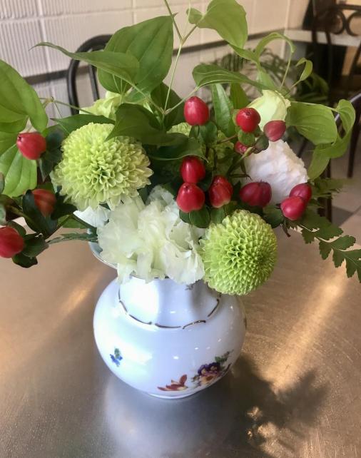 今日は 結婚式から持ち帰ったフラワーアレンジメントを 移し替えて飾りました