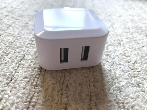 それはさておき、表記上のスペックではUSBが2ポート用意されていて、その合計出力が最大2.4Aということになっています。1ポートだけ使えばそちら側から2.4A出るという仕様の筈ですが、果たして実際に2.4Aがきちんと出力されているのか否かは今回は検証していません。