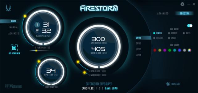 色の設定は、OCツールである、Fire Stormというアプリケーションで、OCの設定やモニタリングと共に設定することができます。