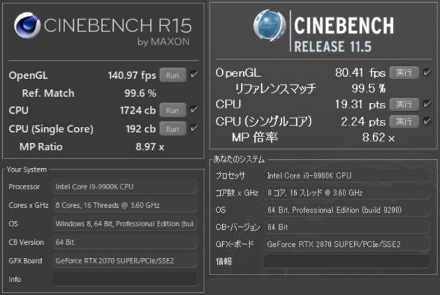 3D MARKのスコアとCineBench(Open-GLのみ)のスコアの比較です。