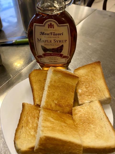 濃厚な味わいが欲しければ、メープルシロップを垂らす前に、パンをバターに塗っておけばOK.