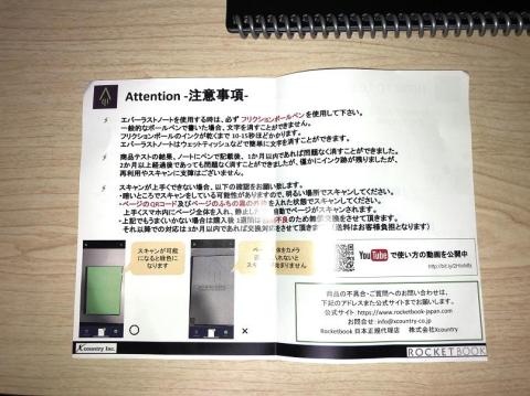 ノートの他に説明書、フリクションボール、ふき取り用ウェスが付属しています。