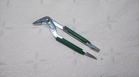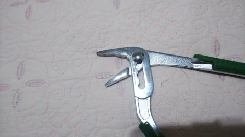 こちらの特徴としては、ウォーターポンププライヤーであっても口がちゃんと2等辺三角形のように開く事によって、ネジを均等に掴む事が出来るように工夫してあることですかね。