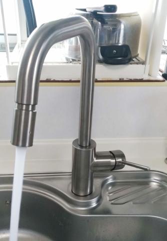 一番格安の混合栓なんですが、シャワーヘッドが大きくて洗い物が確かに良い感じなんです。