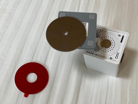金属プレートは付属の両面テープ(赤いドーナツ型のもの)で