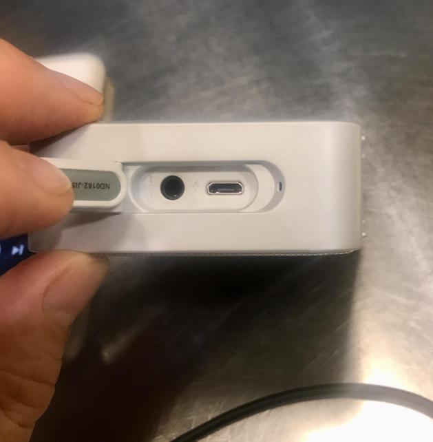 筐体サイドに備わる分厚いゴムハッチの中に、ミニプラグ入力端子とマイクロUSB端子が備わります