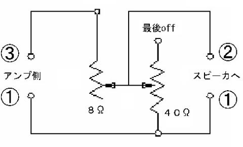 アッテネーター中点が③側(上方向)の時は①-②間は40Ω 、 アース側では0Ω