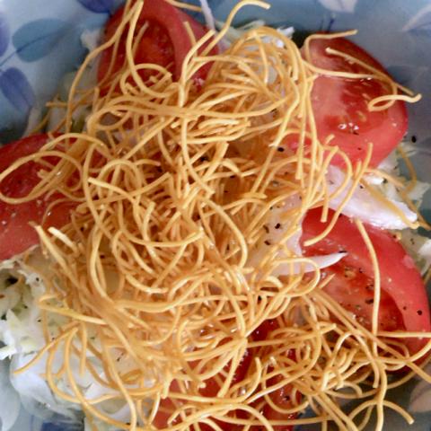 「揚げ麺」と「生野菜サラダ」って、どうしてごんなに相性が良いのでしょうか?