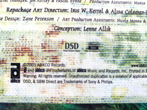 DSDとSBM Directのロゴが併記されています。DSDマスタリングなのでDSDは解るのですが、SBM Directはどこで使われているのかよく解りません。というのも、SBM(Super Bit Mapping)は元々より高いビット数で記録されたデータをクオリティを保ちつつ16bitまで落とす技術であり、SBM DirectというのはDSDをCDフォーマット相当まで落とし込む技術なのです。DSD→PCM→カッティングというプロセスだとすると、わざわざアナログカッティングに適したDSDをPCMに変換する意味がわかりません。