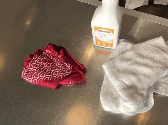 このオレンジクリーナーなら タオルで拭き上げたあと 手ぬぐいで水気を取るだけで